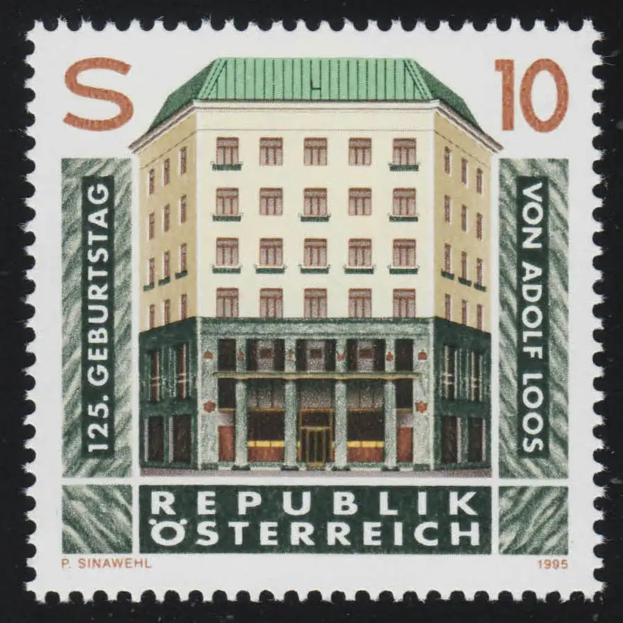 2145 Anniversaire, Adolf Loos, architecte, "Loos-Haus," Vienne, 10 S frais de port **