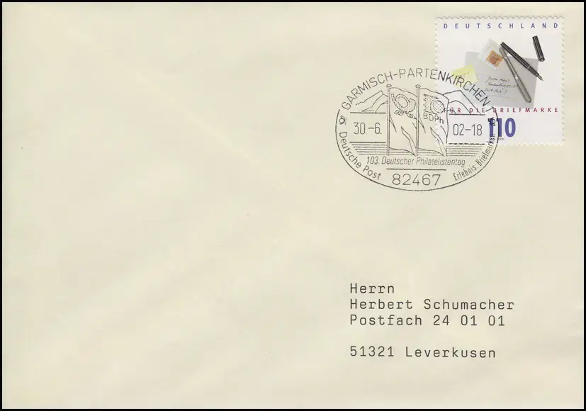 2148 Journée du timbre, Bf SSt Garmisch-Partenkirchen Journée des philatélistes 30.6.02