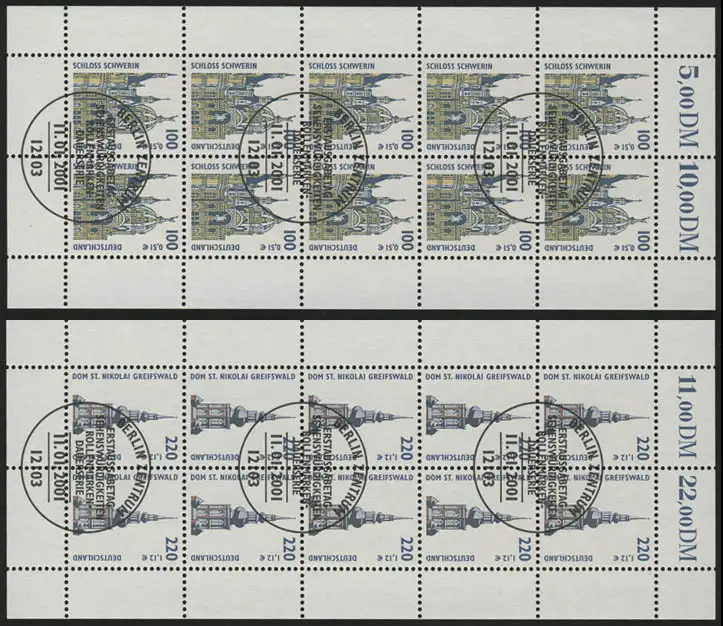 2156-2157 SWK Schwerin & Greifswald - 10er-Bogen-Test ESSt Berlin