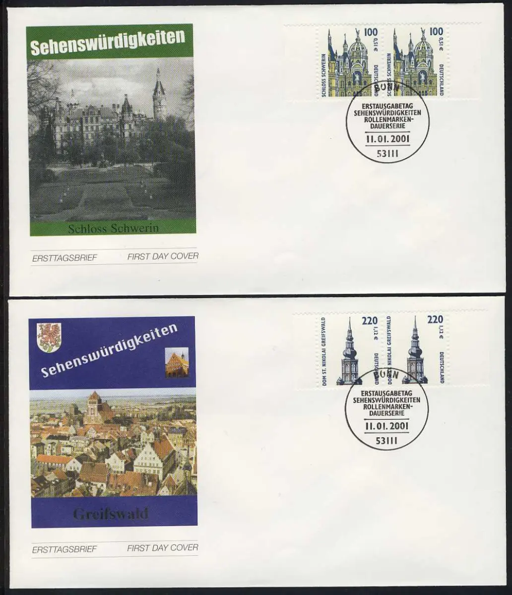 2156-2157 Swik Schwerin et Greifswald 2001, couples sur FDC, ESSt Bonn