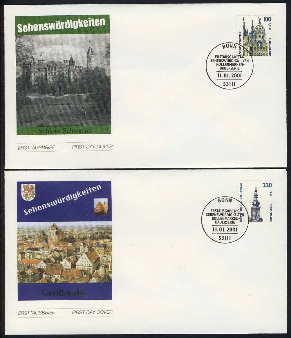 2156-2157 Swik Schwerin et Greifswald 2001 FDC ESSt Bonn