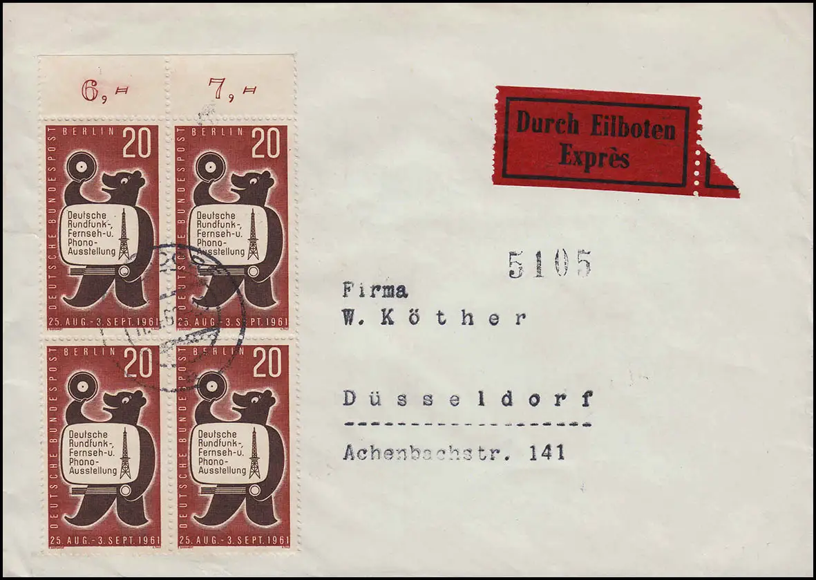 217 Exposition Berliner Bär OR-Vbl. MeF Lettre d'urgence du jour-O 11.4.1962
