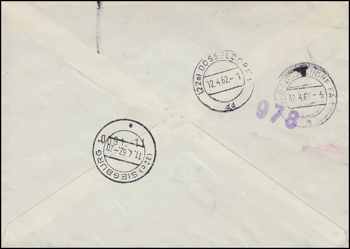 Tampon d'arrivée DÜSSELDORF 12.4.62 Numéro de catalogue: 217 Examen: original Référence produit: 00000000032153