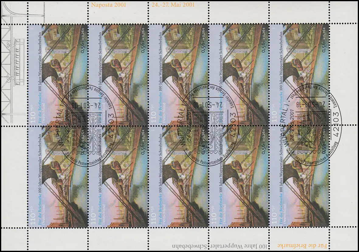 2171 Bloc en suspension NAPOSTA - Bogen 10 - 2e édition, SSt Wuppertal Logo 24.5.2001