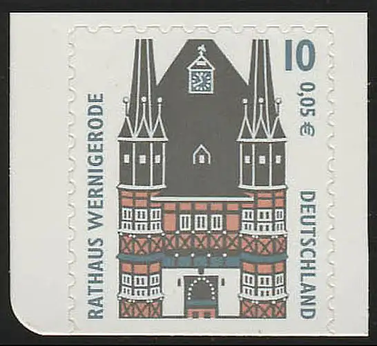 2187BD SWK 10 Pf/0,05 Euro ci-dessous coupé sk Hôtel de ville Wernigerode, **