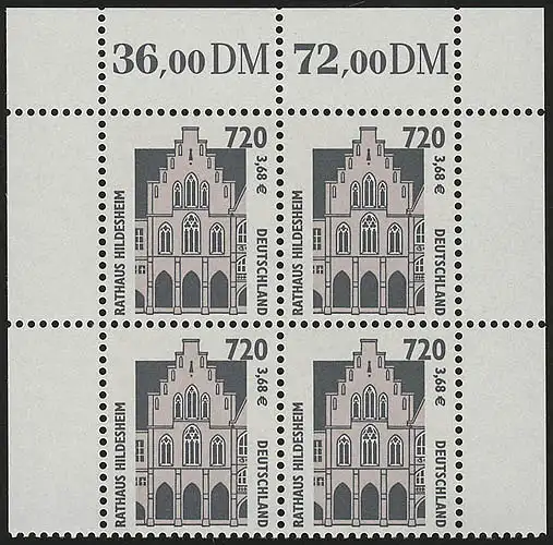 2197 SVK 720 Pf/3,68 Euro OR-Quaterbl. ** frais de port