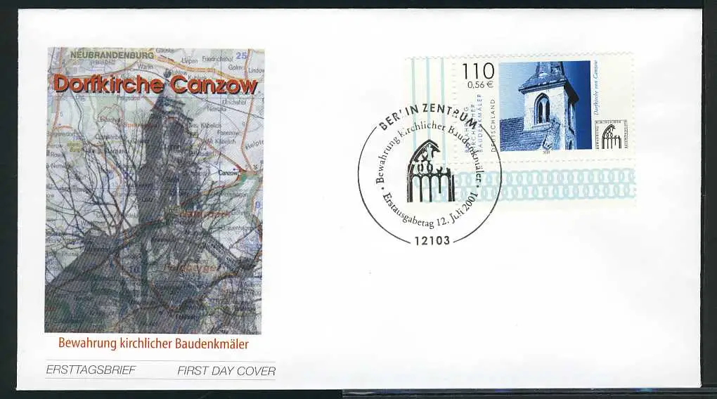 2199 Monuments historiques de l'église du village Canzow FDC Berlin