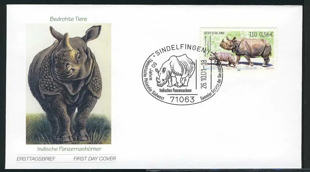 2205 Espèces menacées de rhinocéros, FDC ESSt Sindelfingen