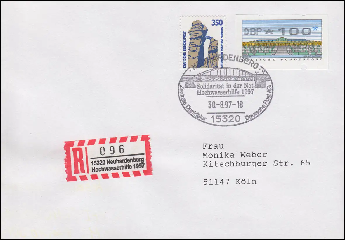 2.2.1. Nagler KOBALTBLAU 100 R-Lettre S-R-Z Aide aux inondations Neuhardenberg 30.8.97