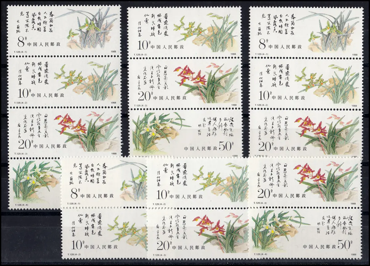2215-2218 Orchidées, ensemble de 6 combinaisons d'impression, frais ** / MNH
