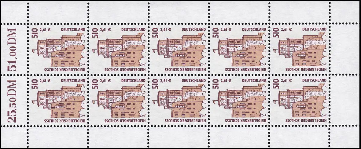 2225 SWK 510 Pf / 261 Cent Heidelberger Schloss - Bogen 10 **