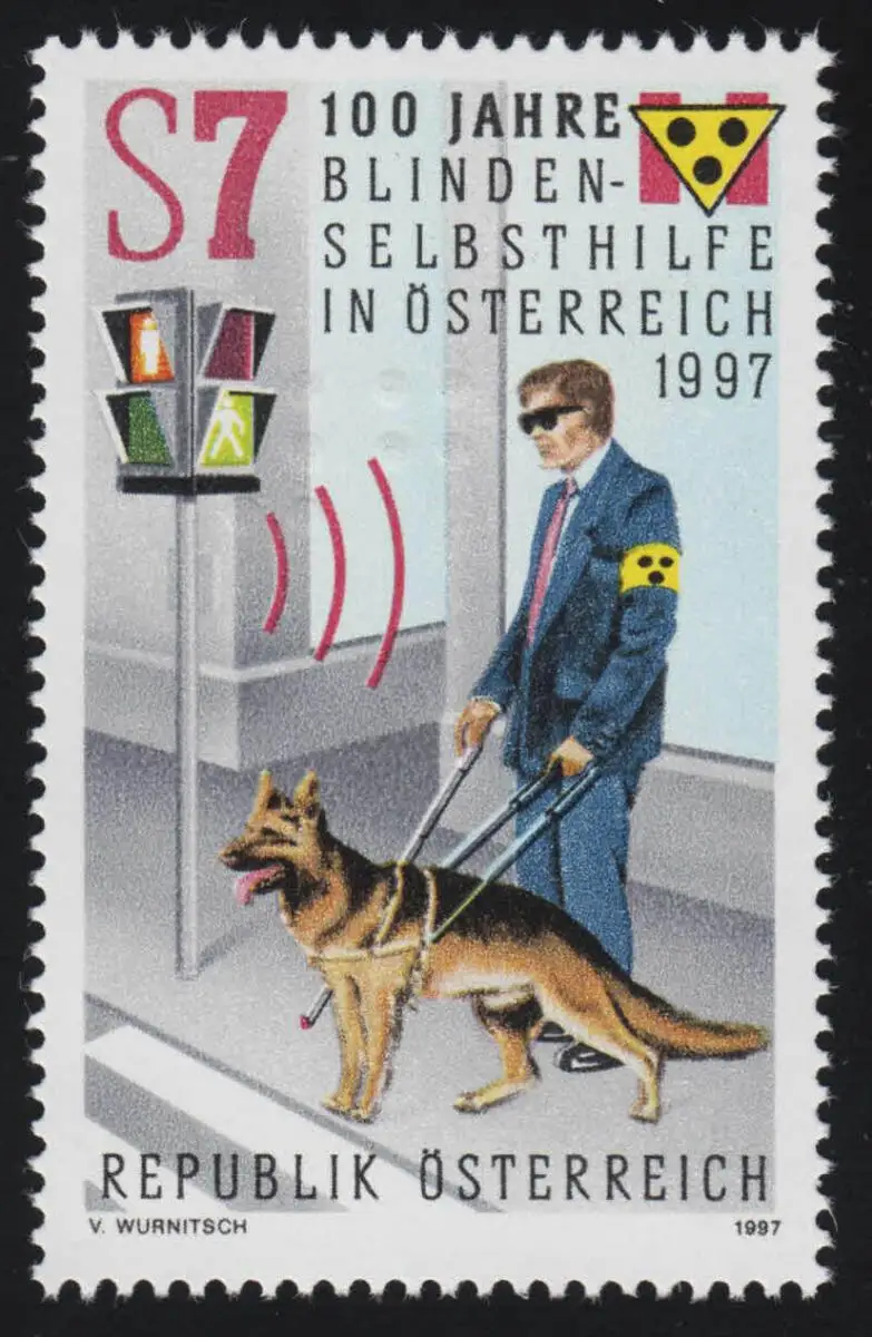 2232 Autoassistance aveugle en Autriche, aveugle, chien aveugle au feu, 7 p, **