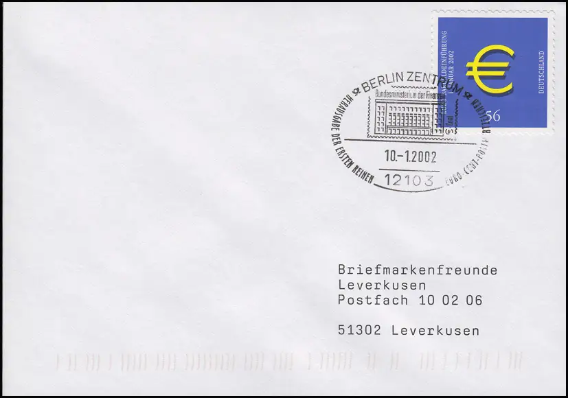 2236 Introduction de l'euro autocollant, FDC ESSt Berlin Ministère des Finances 10.1.2002