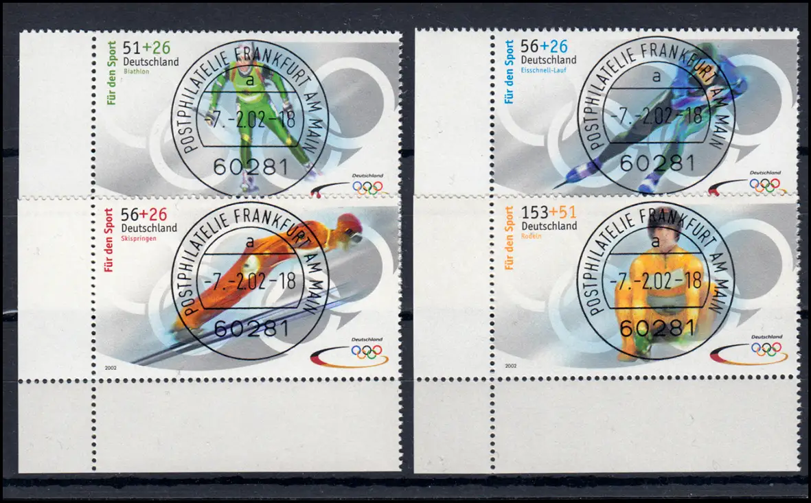 Tampon plein comme cachet du premier jour du bureau de livraison Francfort / Main 7.2.2002 Numéro de catalogue: 2237-2240 Vérification: original Référence produit: 00000000003333