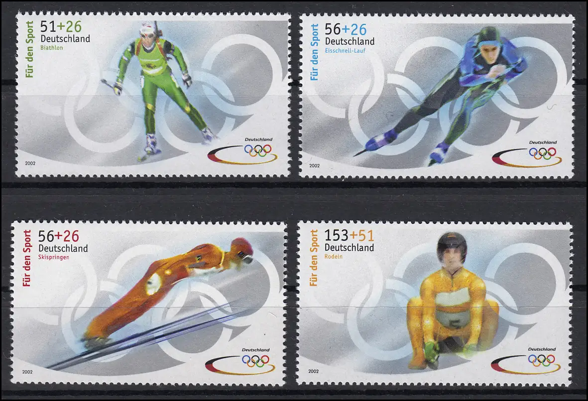 2237a-2240a Aide sportive - Ensemble des arcs de 10 Olympiades 2002, **