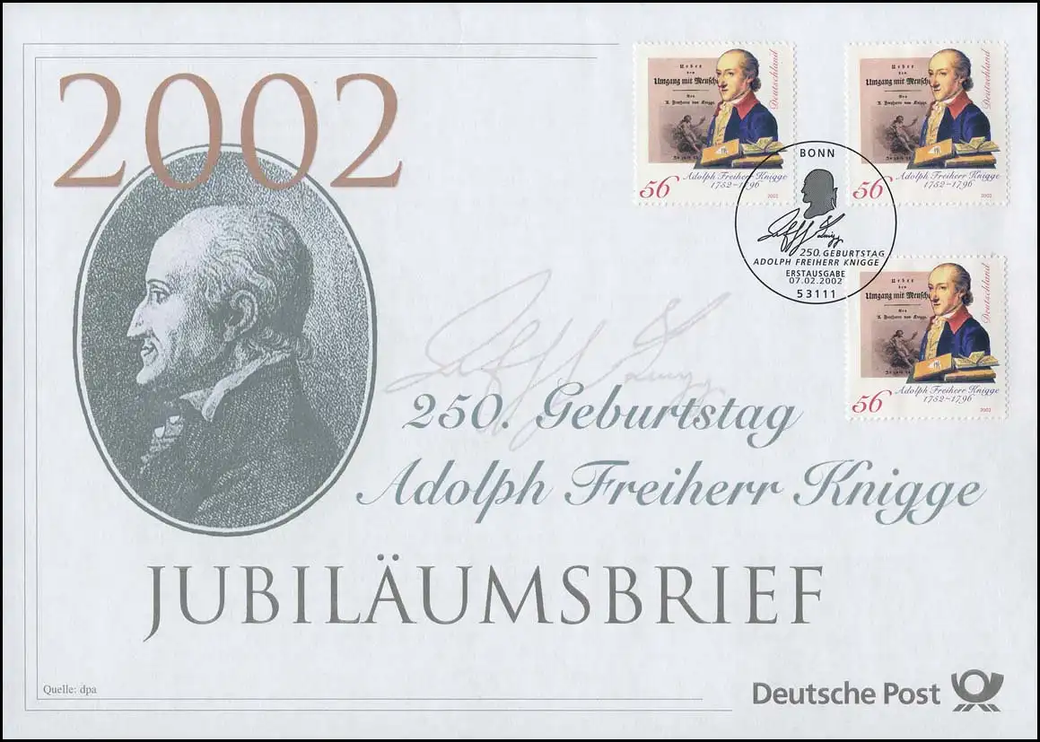 2241 Freiherr von Knigge 2002 - Lettre d'anniversaire
