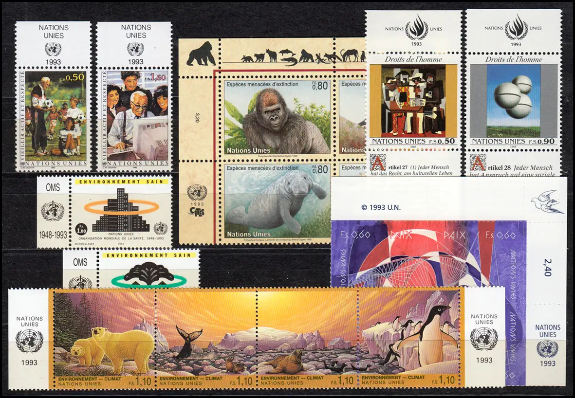 225-242 Nations unies Genève année 1993 complète - avec TAB, frais de port