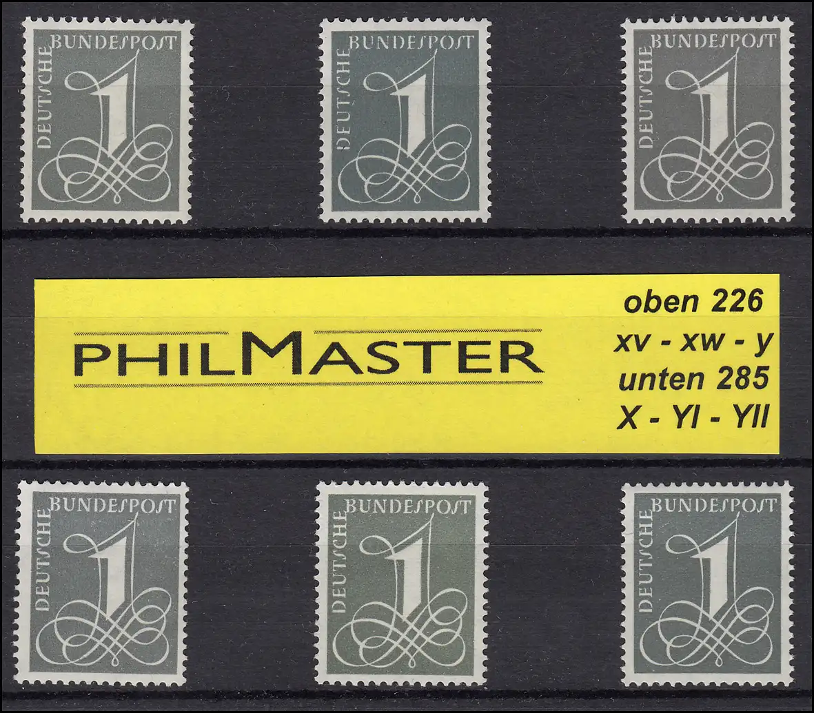 six variantes de la marque 1-Pf 226 xv, xw et yw ainsi que 285 X, YI et YII complète Numéro de catalogue: 226+285 Test: original Référence produit: 50000022601199>p>Attention: Cet article est ou a été disponible plusieurs fois. L'illustration montre l'un de ces articles en un exemplaire. La marque livrée a uniquement les caractéristiques indiquées dans la description et peut donc différer de l 'image. Toutefois, en particulier pour les marques marquées, nous nous efforçons de fournir l l\'article représenté. Si cela vous convient, veuillez nous le faire savoir.