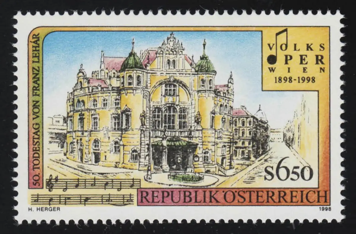 2263 Volksoper Wien, bâtiment historique de Volkeroper, 6.50 S post-freeich **