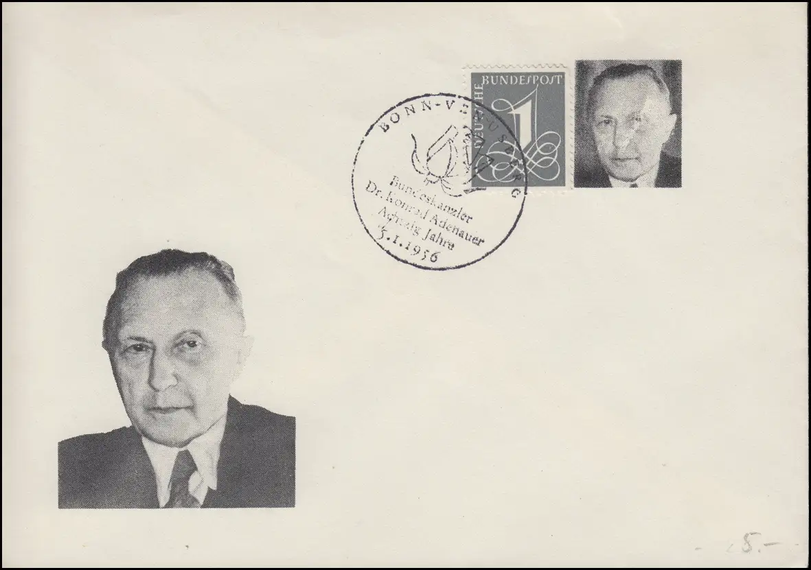 226x chiffre 1 pf. enveloppe de bijoux en blanc Adenauer SSt BONN-VENUSBERG 5.1.1956