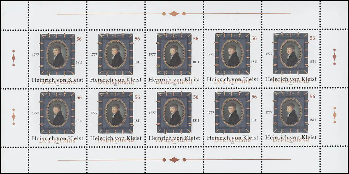 2283 Sticker Heinrich von Kleist - Bogen 10 ** post-fraîchissement