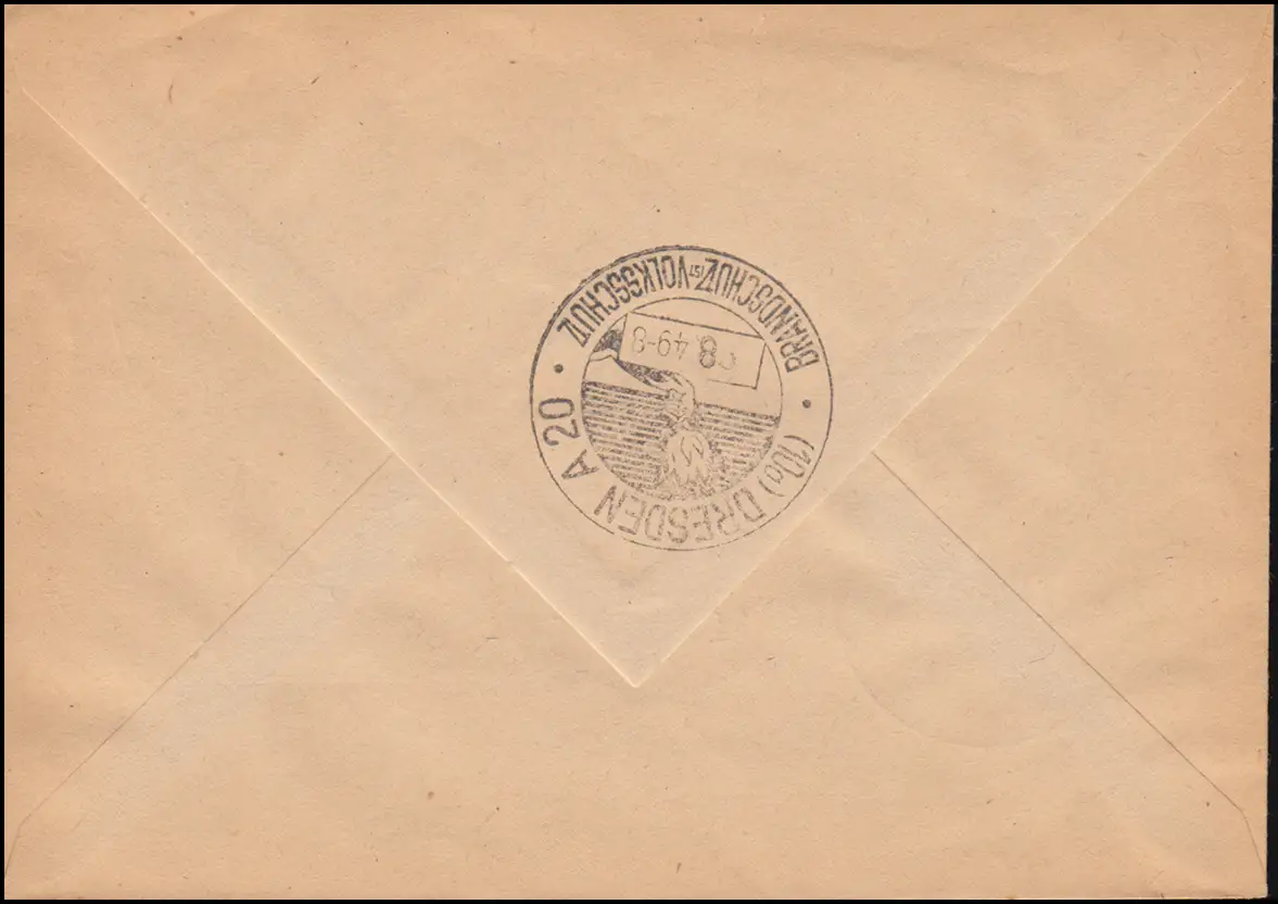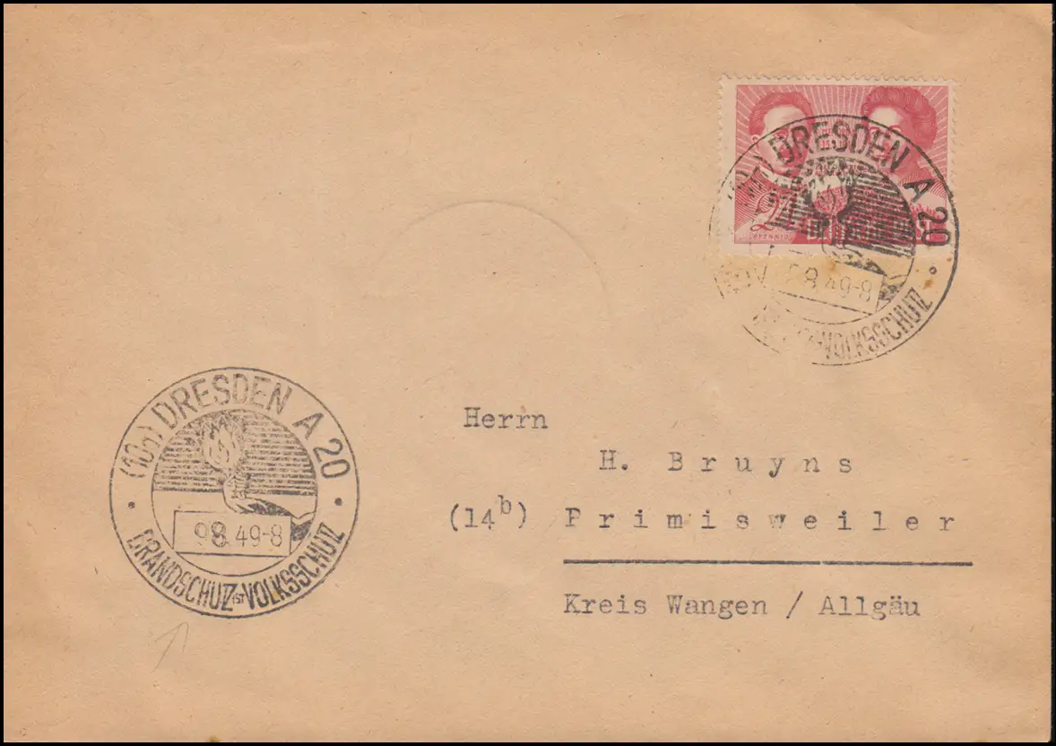 229 Liebknecht et Luxembourg 24 Pf sur lettre SSt DRESDEN pompiers 9.8.1949
