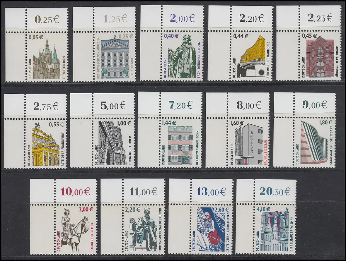 2298 ff SWK 14 valeurs avec la monnaie euro complète, coins en haut à gauche **