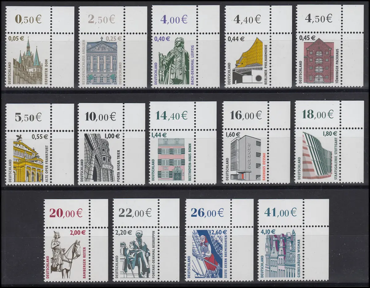 2298 ff SWK 14 valeurs avec la monnaie euro complète, coins en haut à droite **