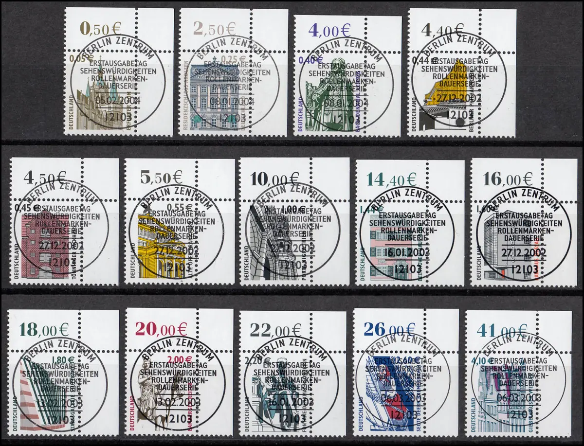 2298 ff SWK 14 Werte mit Euro-Währung komplett, Ecken oben rechts, ESST Berlin