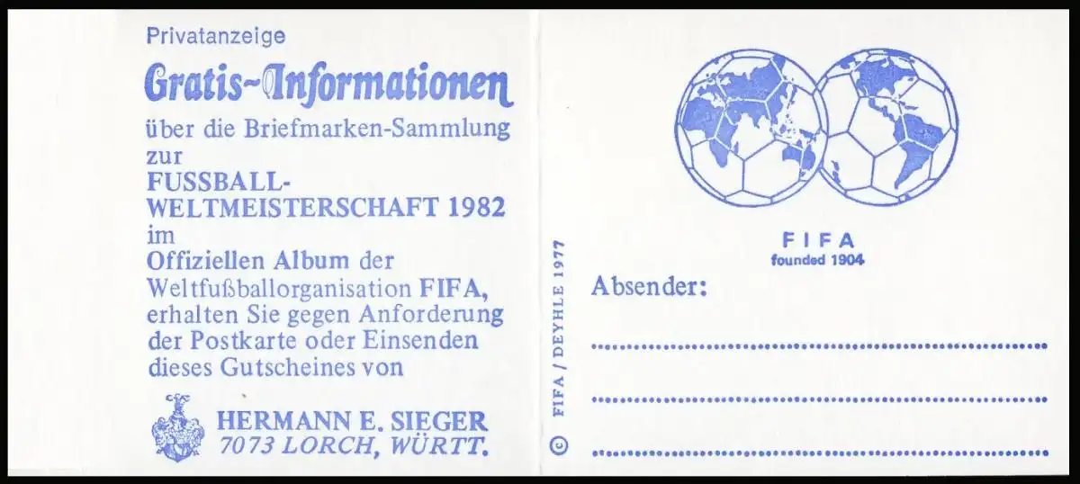 2 Adresses, vainqueur/FIFA; PLF III: trait sur toit, case 3 Numéro de catalogue: 22Id Examen: original Référence produit: 500200022041090>Attention: Cet article est ou a été disponible plusieurs fois. La figure montre un de ces articles en un exemplaire. Le nom de la marque livrée a uniquement les caractéristiques indiquées dans la description et peut donc différer de celle-ci. Toutefois, en particulier pour les marques tachées nous nous efforçons de livrer l'article représenté. Si cela est une condition pour vous, veuillez nous le faire savoir.