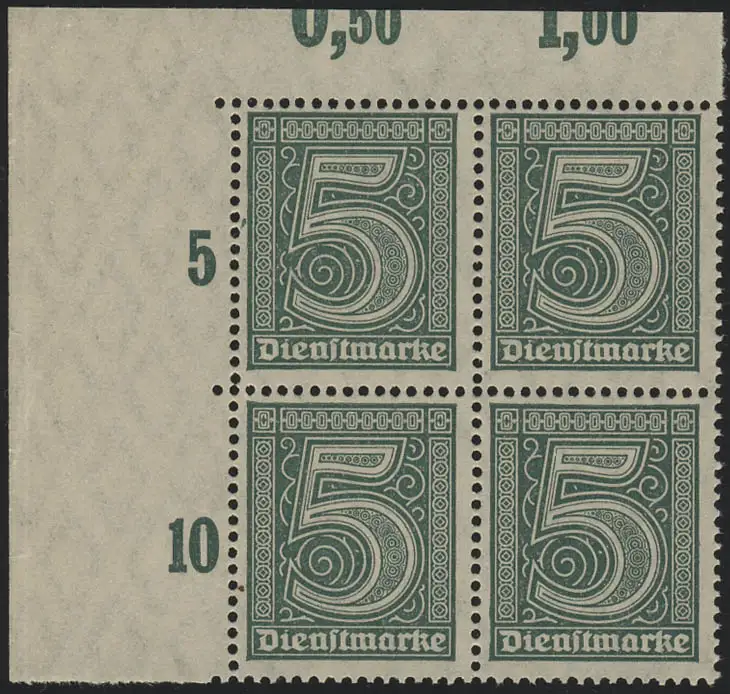 23 P OR Service 5 Pf. Bloc quatre d'angle en haut à gauche, pression de plaque **