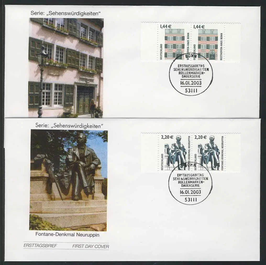 2306-2307 SWK Beethoven-Haus 1,44 et Fontane-Moyeu 2,20 - Couples FDC Bonn