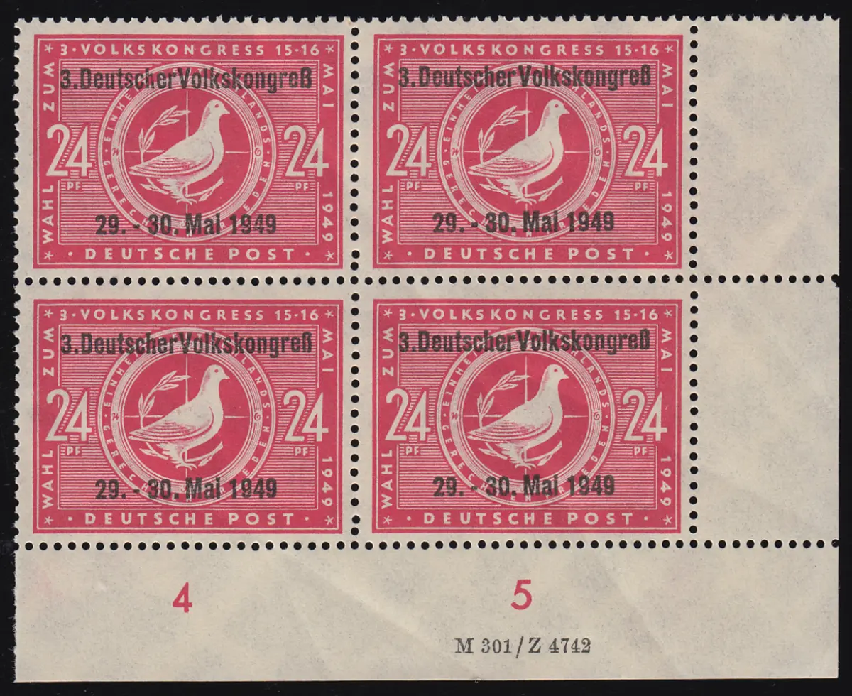 233 II DV 2 Volkskongress Eck-Vbl unten rechts mit Druckvermerk 2, postfrisch **