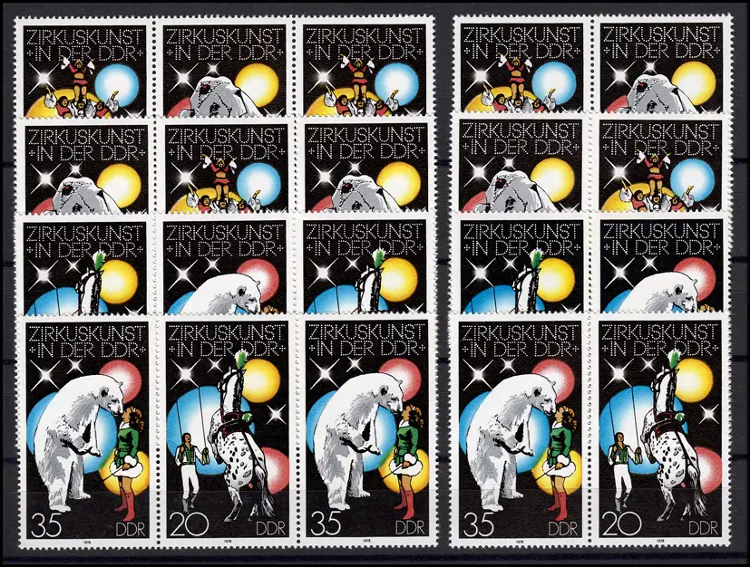 2364-2367 Art de cirque en RDA 1978, 16 tirages groupés + 4 Ezm, set post-fraîchissement