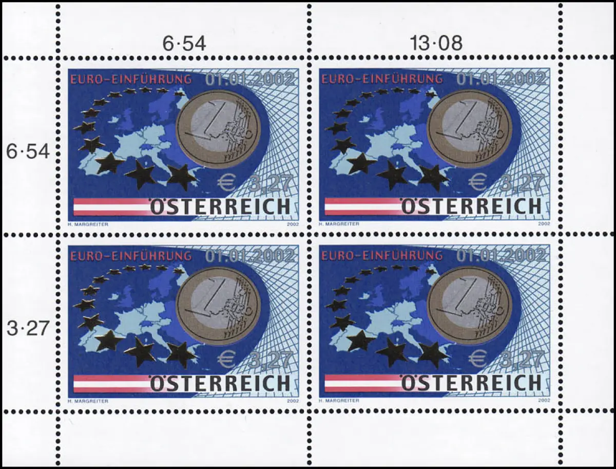 2368 Introduction de l'euro 2002 - Petit feuillet complet, frais de port