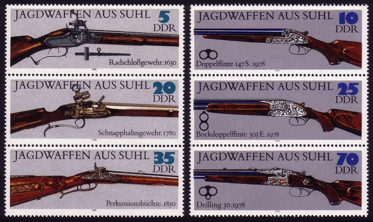 2376-2381 Armes de chasse de Suhl 1978, bandes de 2x3, set de compression