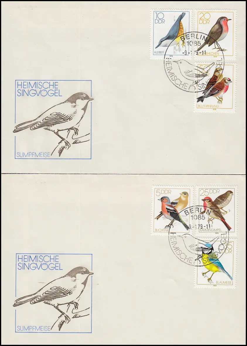 2388-2393 Oiseaux chanteurs indigènes 1979, phrase sur FDC 1 et FDP 2