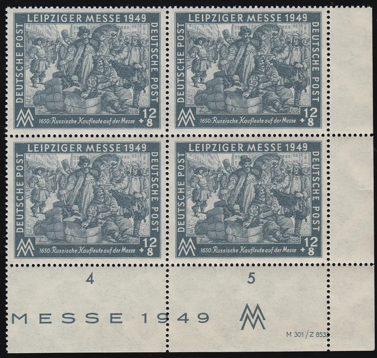 240 DV Leipziger Messe 1949 - Eck-Viererblock u. rechts mit Druckvermerk, **
