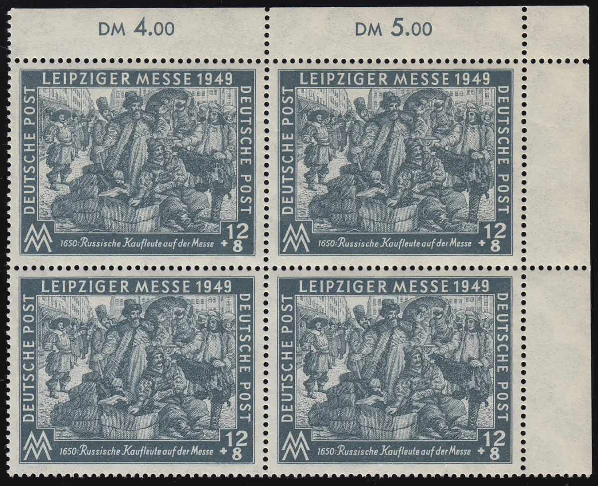 240 Leipziger Messe 1949 - Eckrand-Viererblock oben rechts, ungefaltet **
