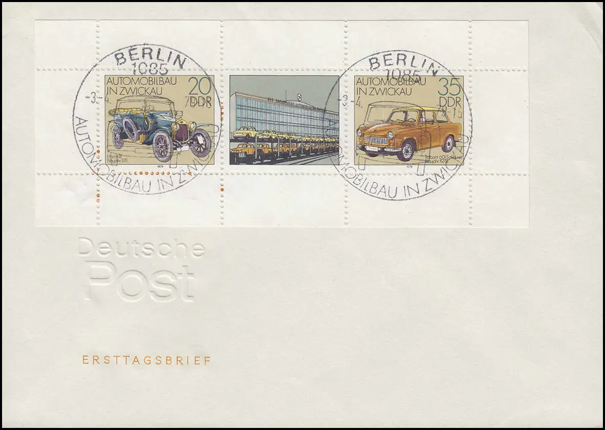 2412-2413 Construction automobile à Zwickau 1979 - Petite feuille sur le FDC de bijoux ESSST BERLIN