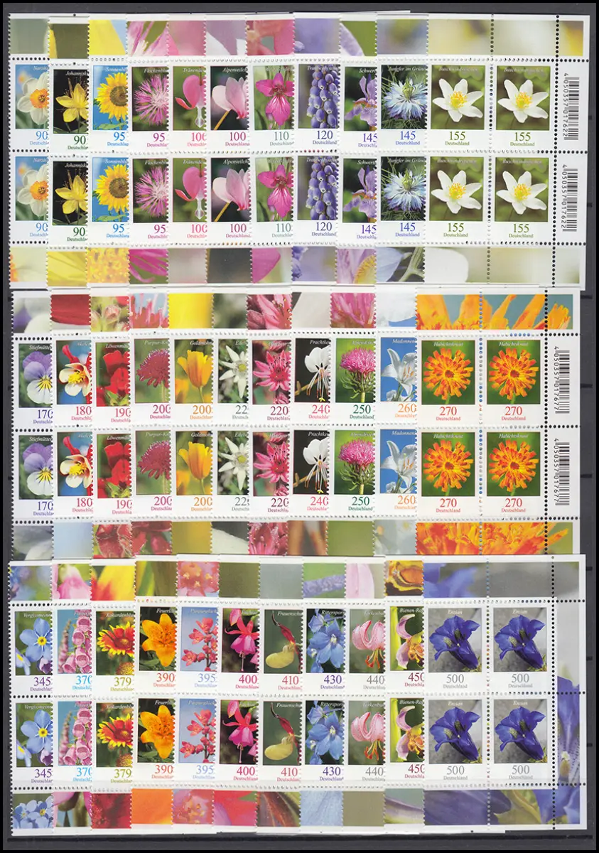2434 ff Blumen - 66 Werte komplett im Viererblock rechts, postfrisch **