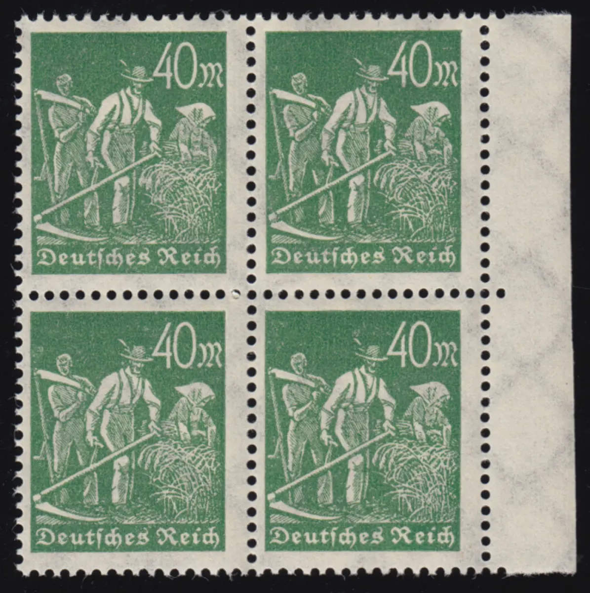 244d Fremark Arbeiter 40 M, vert foncé, bord de 4 blocs.