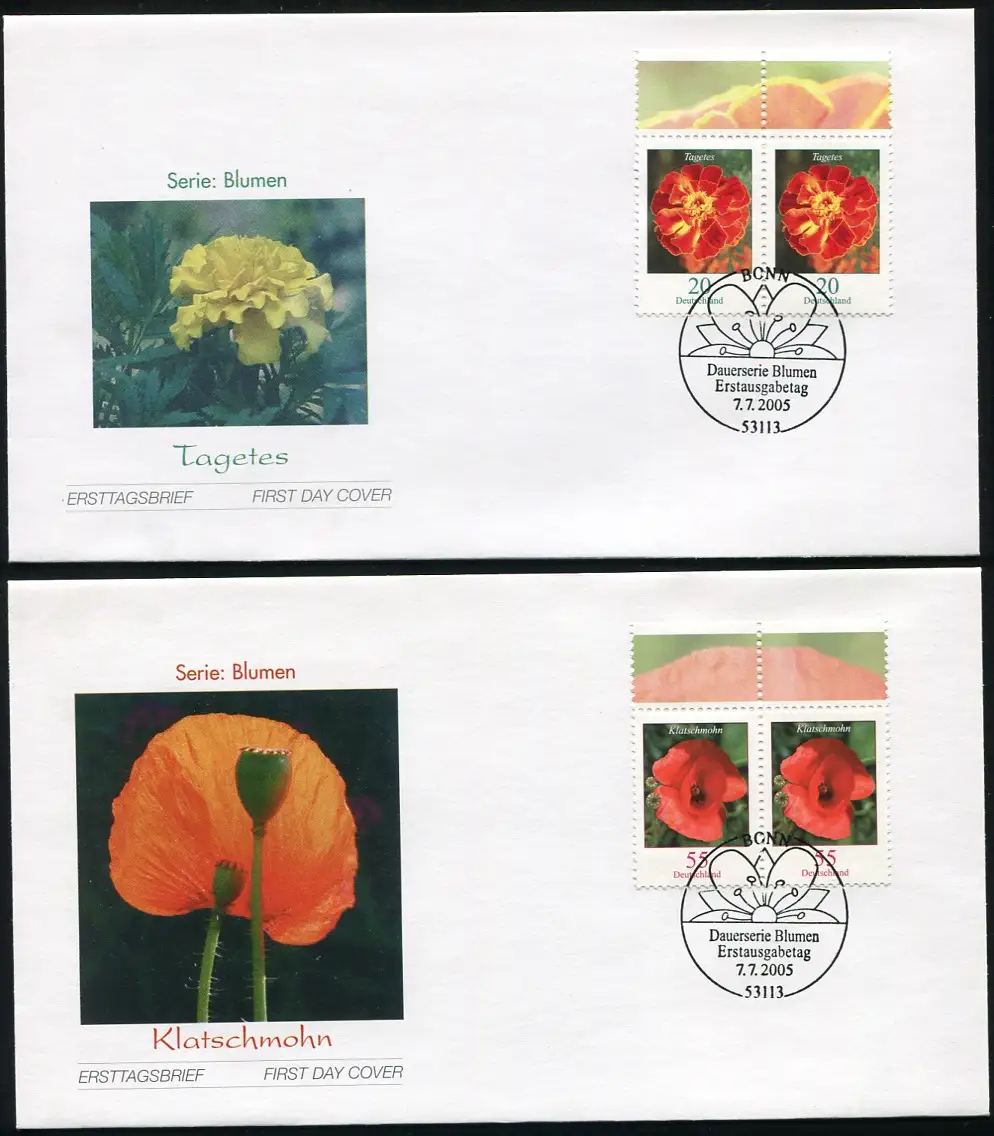 2471-2472A fleurs 0,20 et 0,55 euro en paires sur 2 FDC Bonn