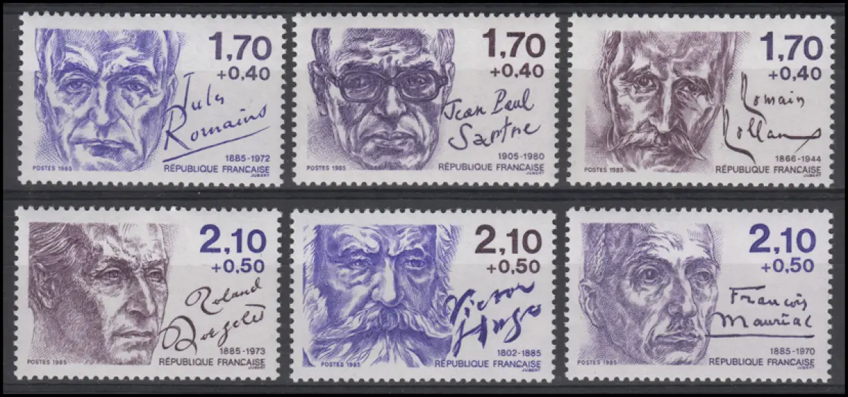 Jules Romains, Jean-Paul Sartre, Romain Rolland, Roland Dorgeles, Victor Hugo, Mauriac Numéro de catalogue: 2484-2489 Examen: original Référence produit: 00000000002324>p>Remarque: Cet article n'est disponible qu'une seule fois. Vous recevrez exactement l'article représenté.