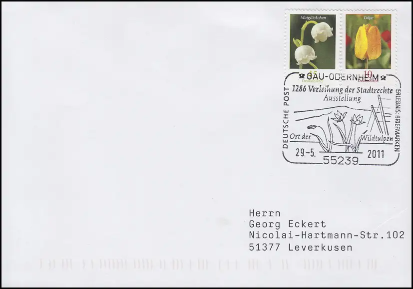 2484+2794 Tulpe & Maigloeckchen, Bf SSt Gau-Oderheim Lieu des Tulipes sauvages 29.5.11