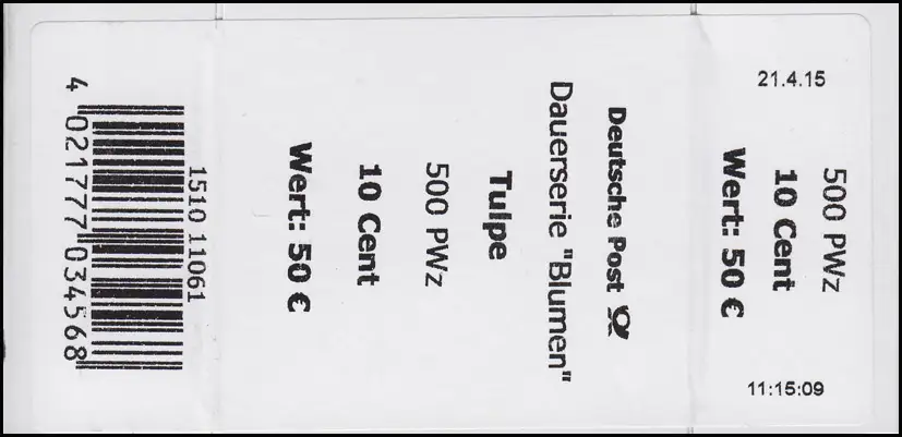 2484 Tulipe 10 Banderole / autocollant pour rouleau 500, avec date et heure