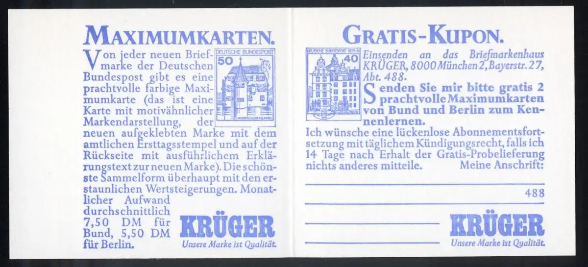 Une offre dans Timbres RFA Carnets de timbres - 4.733 autres offres dans cette catégorie