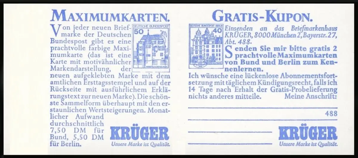 Une offre dans Timbres RFA Carnets de timbres - 4.752 autres offres dans cette catégorie