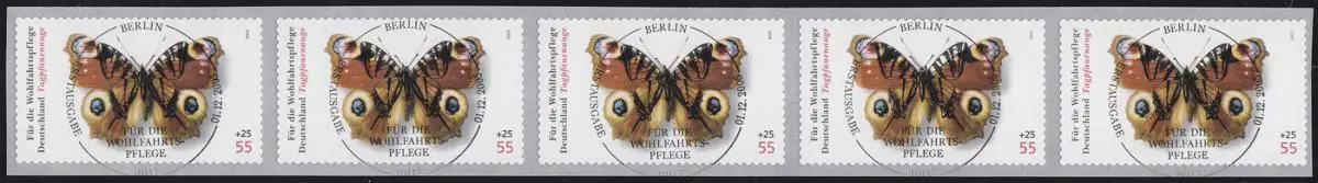2504 papillon, bande de 5 avec numéro GERADER, ESSt Berlin
