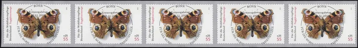 2504 papillon, bande de 5 avec numéro GERADER, ESSt Bonn